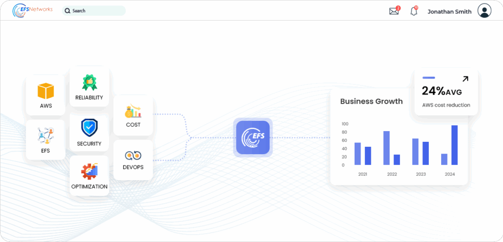 As an AWS Advanced Tier Partner, EFS Networks delivers expert AWS DevOps transformation solutions that maximize cloud performance, reduce AWS costs, and enhance security. From comprehensive AWS Well-Architected Reviews to cloud cost optimization services and enterprise cloud migration expertise, we help your team innovate faster and scale smarter.